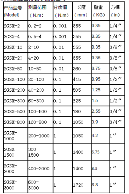 SGSX数显扭力扳手规格型号